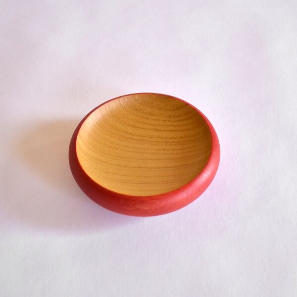 ころんとしたフォルムの小物入れです。桐でできているのでとても軽いです。きれいな色で染色しています。